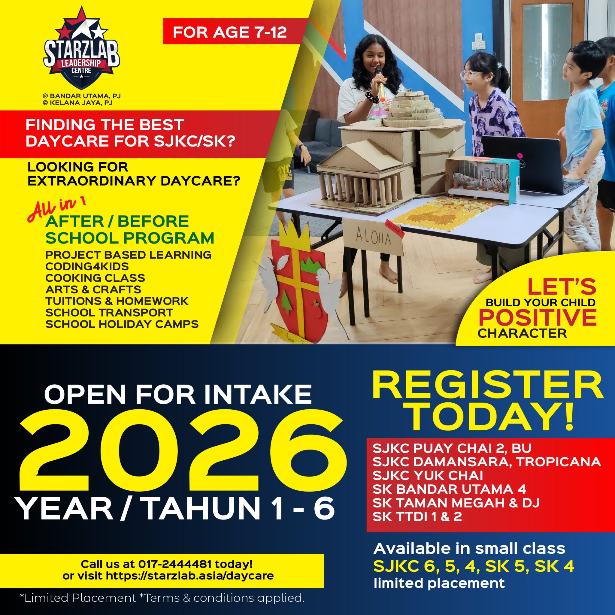 StarzLAB’s Team is comprises of 12 full time staffs with more than 20 years of combined experience in education, corporate training and child’s psychology. We are dedicated in shaping the mind of our new generation with the latest learning method, influence positive behaviour and inspire them to be a great individual. We believe, each child is unique and we embrace diversity in them.